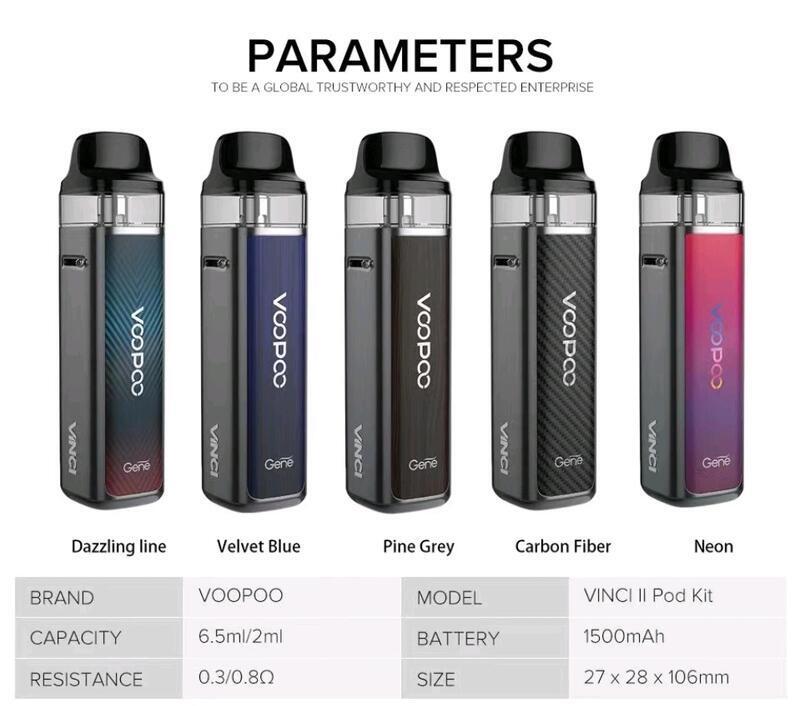 VOOPOO VINCI 2 Kit 是針對新手與進階用戶設計的多功能 Pod Mod 套件。其高質感外觀與實用性能完美結合,提供穩定的霧化體驗,無論您追求大雲量還是細膩口感,VINCI 2 都能滿足您的需求!